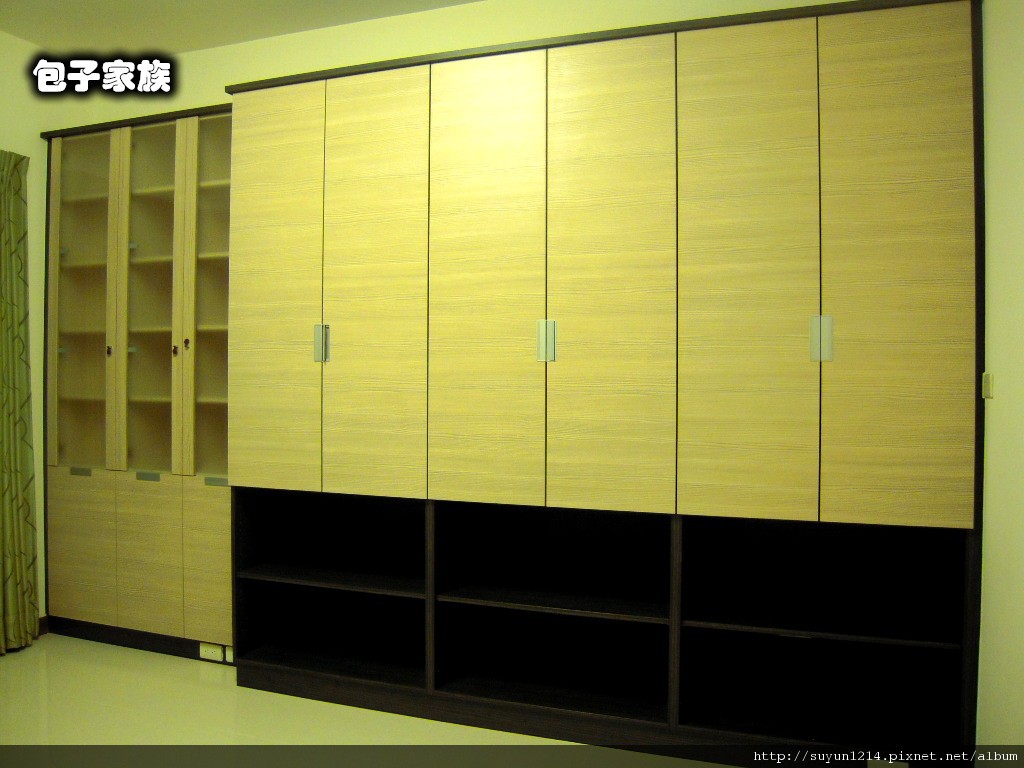 做完後的樣子...右下方沒有門片是故意設計給大小包子用的..方便拿取東西,因為這裡可是姊姊玩大球的地方..